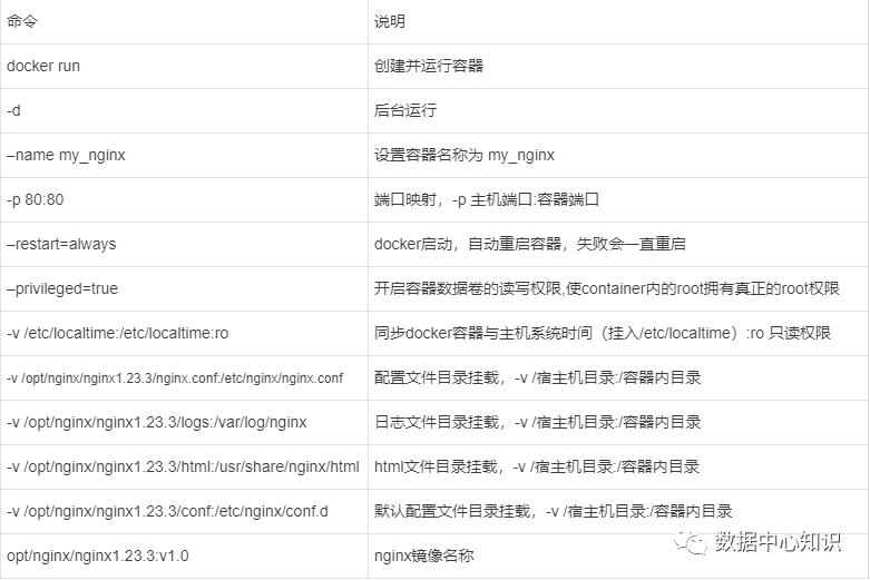 docker run -d --name my_nginx -p 80:80 --restart=always --privileged=true -v /etc/localtime:/etc/localtime:ro -v /opt/nginx/nginx1.23.3/nginx.conf:/etc/nginx/nginx.conf -v /opt/nginx/nginx1.23.3/logs:/var/log/nginx -v /opt/nginx/nginx1.23.3/html:/usr/share/nginx/html -v /opt/nginx/nginx1.23.3/conf:/etc/nginx/conf.d opt/nginx/nginx1.23.3:v1.0