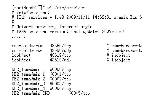 PS:DB2_tsmadmin*的端口是用作FCM通信的,系统的第一个实例时60000开始,后续的实例是60006、60011...,这里只需要添加第一组实例的端口信息即可。