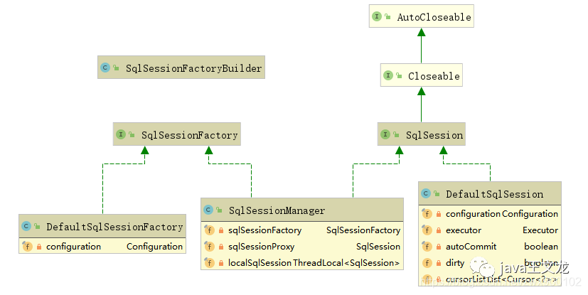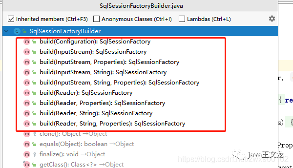 DefaultSqlSessionFactory是SqlSessionFactory默认的实现类,现在用的也基本上就是它。这个类提供了8个方法用来获取SqlSession对象。这个截图不太好截,为了方便对比,我把方法列举出来: