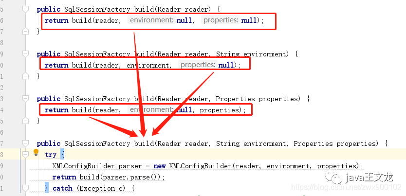 上面图中也可以看到,这2个方法在将配置文件解析成一个Java配置类Configuration之后,又同时调用了另一个方法build(Configuration config),而这个方法也没做什么事,就是把配置类传进去返回了一个DefaultSqlSessionFactory对象,这个对象就是SqlSessionFactory的实现类