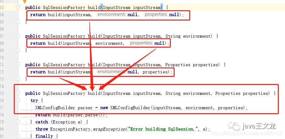请看下图,前面三个方法最终都调用了第4个方法,所以实际上就是一个方法