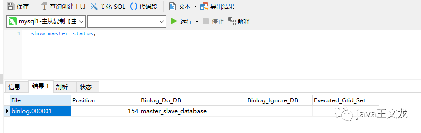 可视化工具(Navicat)输入命令出现下面效果说明开启binlog成功