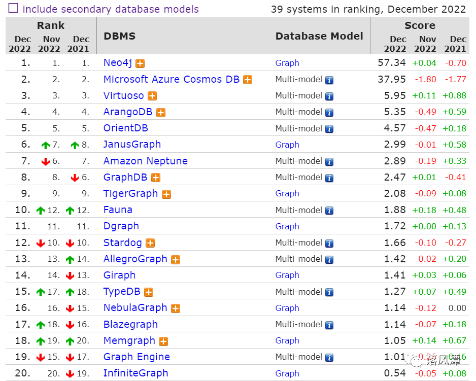 下图是潭主查的最新的图数据库的排名,从国产和专业Graph的角度看,排名还可以。