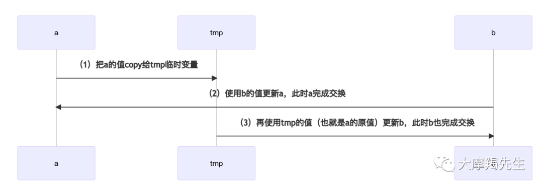 //(3)再使用tmp的值(也就是a的原值)更新b,此时b也完成交换