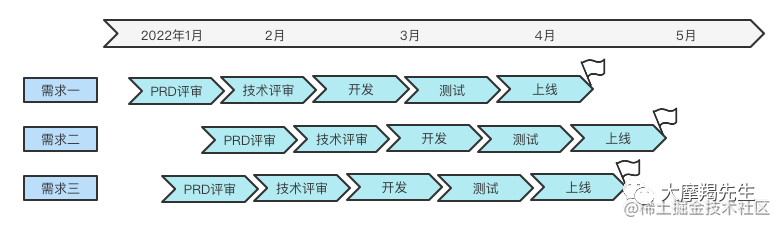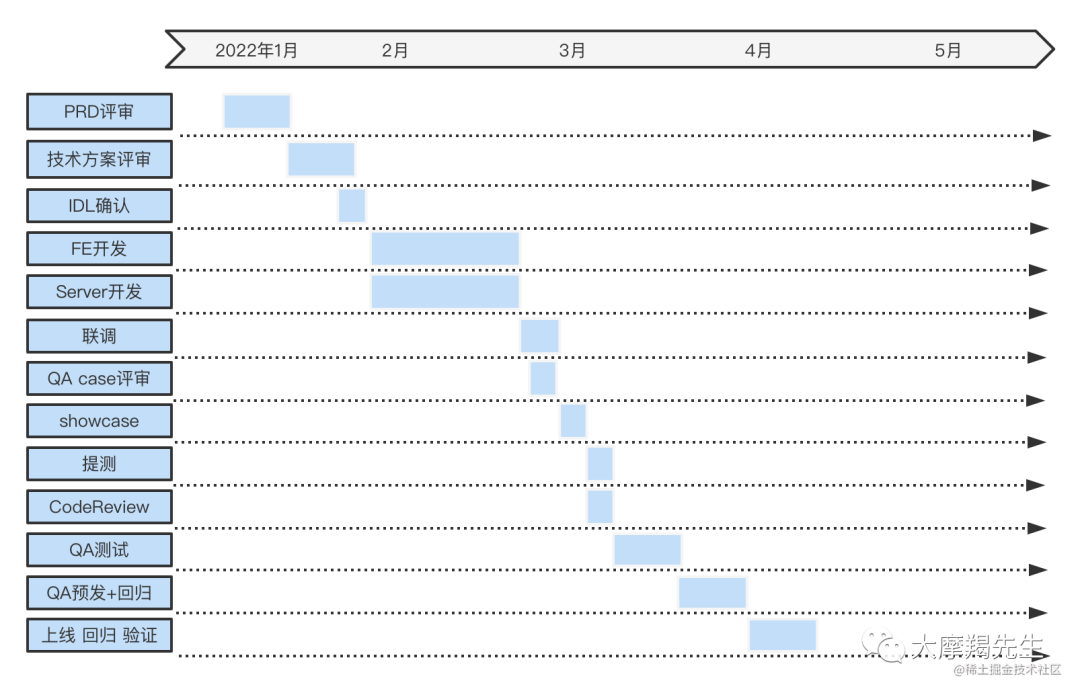 ✅ 宣贯子阶段的目标导向和时间节点观念 。 开发阶段的目标导向是按时联调,联调阶段的目标导向是按时提测。