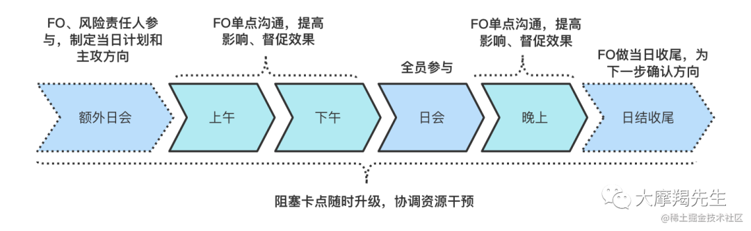 首先,FO可以在showcase提前一天结束时确认自测case计划完成度,在日会进程中追拿结论,如果不能及时完成需要敦促延误方给出结论和DDL,流程节点上及时干预来避免问题产生。