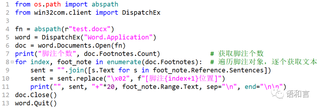 只能获取脚注文本所在的正文句子,不能获取脚注文本自身。把程序发给董老师请教,董老师说在他电脑上是没问题的。在董老师指导下,笔者发现是环境不一样所致。董老师安装的是WPS,笔者安装的是Office 2010。那么,在Office的电脑环境下,如何完美解决获取Word脚注文本的问题呢?今日便分享用pywin32完美提取Word文件中的脚注文本的方法。环境:64位Win 10中文版 + 64位Python 3.6.5 + 64位Office 2010