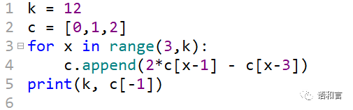 这不就是兔子数列的推导式嘛,除了第一项和第二项跟兔子数列不一样之外,推导式是完全一样的。