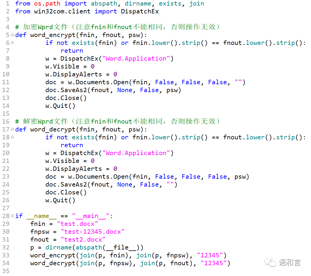 有的时候,我们需要把手头的Word文件进行解密和解密操作。本文不研究破解哈,所以解密需要提前知道密码。本号今天分享用pywin32加密和解密Word文件的方法。
