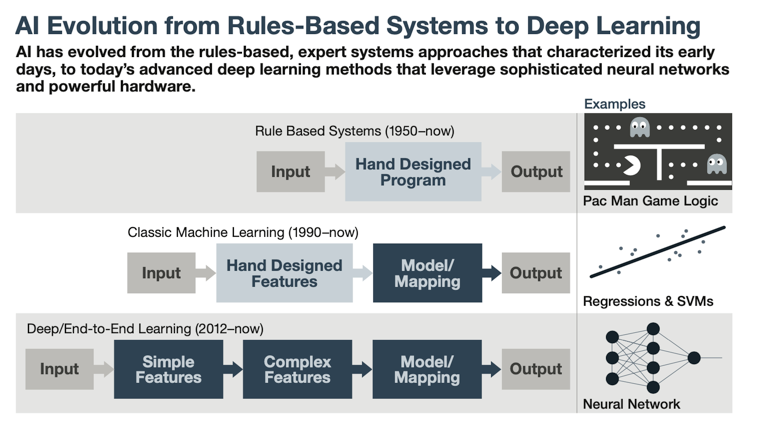 下图是Tom Siebel在Digitlal Transofrmation一书中对AI技术进化史的一张插图,显示了从1950年代开始到现在的主要技术迭代历史。
