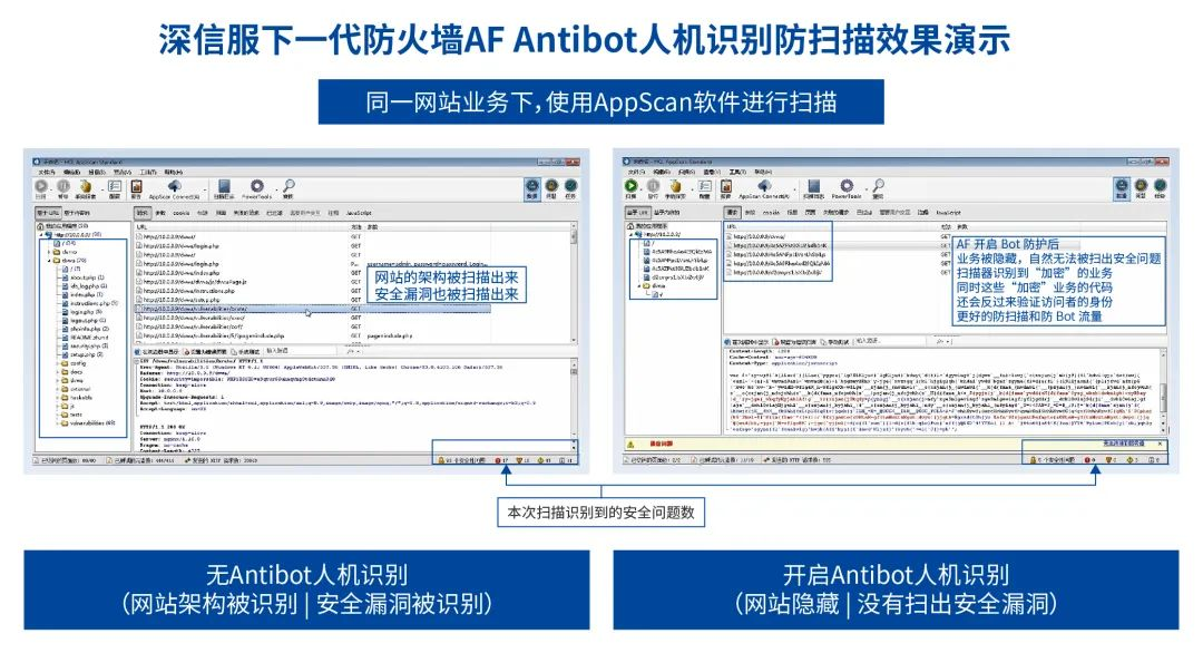 此外,深信服下一代防火墙还搭载了全新人机识别技术Antibot,开启后对访问请求进行主动验证,通过漏洞扫描防护和防口令爆破,从源头上防御勒索入侵问题。