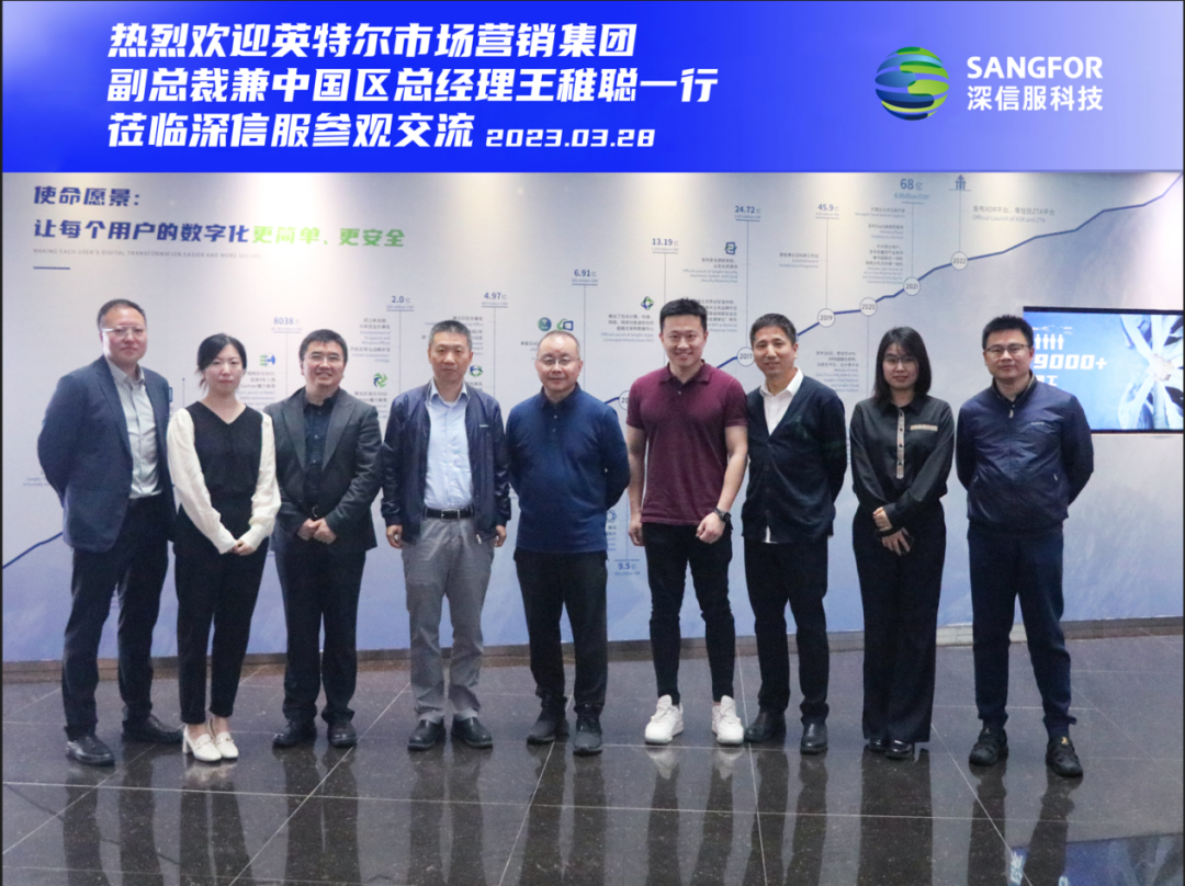 3月28日,全球半导体行业和计算机创新领域的领先厂商Intel市场营销集团副总裁兼中国区总经理王稚聪一行到访深信服,深信服创始人&CEO何朝曦、深信服供应链负责人陪同参观并进行了深度交流。