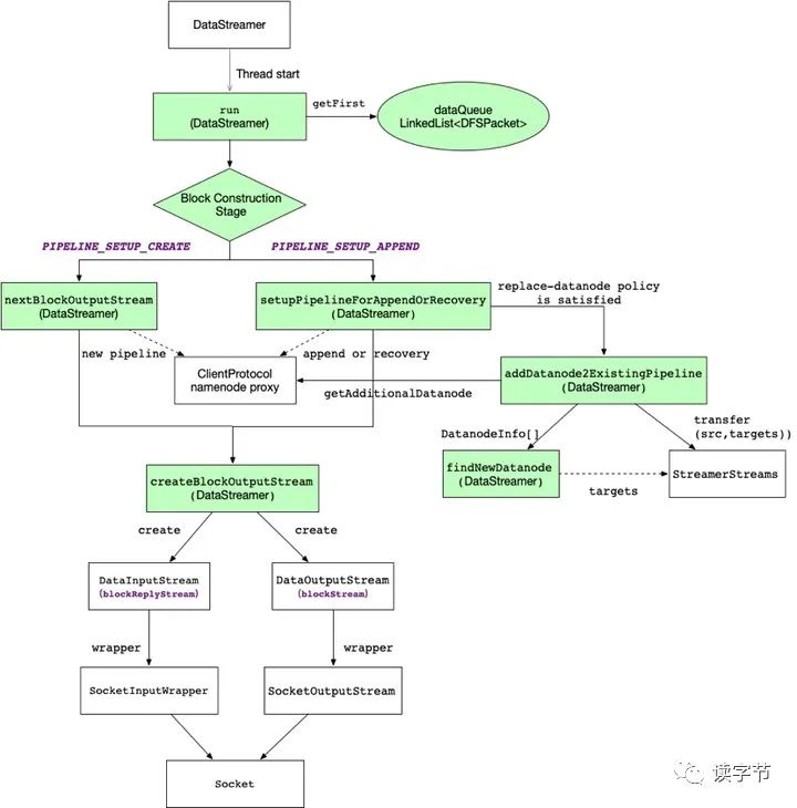 namenode:命名空间管理节点,负责HDFS元数据的管理,以及数据块读取和写入过程中的资源管理与分配等 datanode:数据任务节点,负责存储数据文件,负责与客户端之间、数据块之间的文件读取和写入 block:数据块,HDFS数据存储按照数据块(block)为单位,Hadoop2.x之后默认大小为128M packet:数据包,每次在管道中传输数据需要将数据封装成一个packet,默认为64KB,包含了packet包头、校验chunk和数据chunk pipeline:管道或流水线,应客户端请求,namenode提供存储block副本的datanodes,顺序建立数据副本传输管道,形成链式数据流的传输、存储和写入确认(ACK)