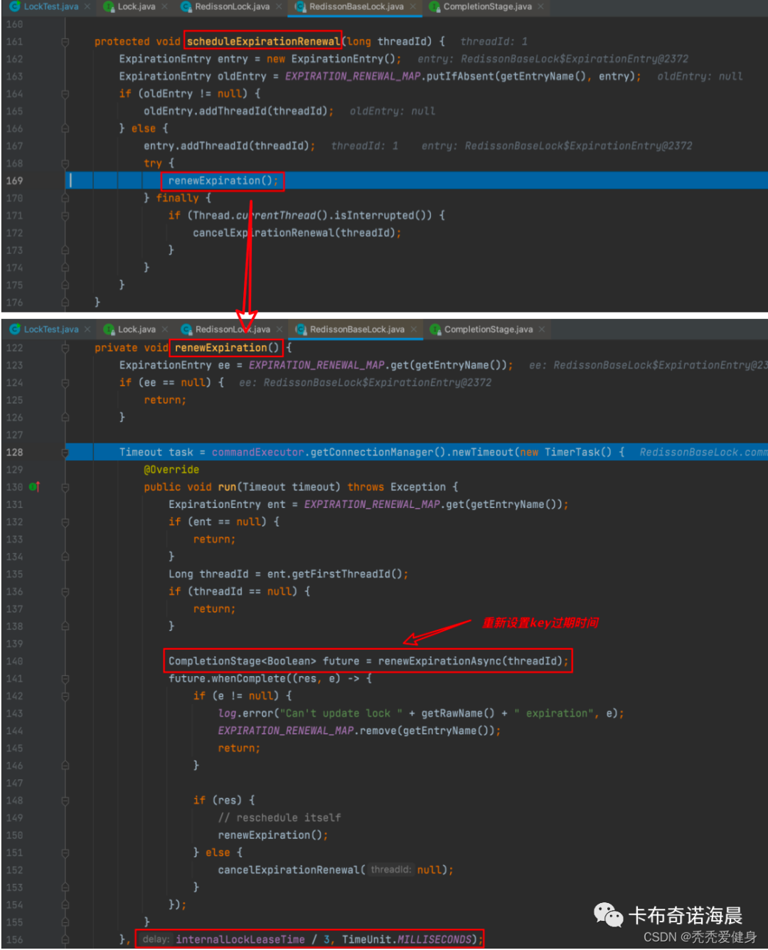 所以⼀个key往往当过期时间慢慢消逝到20s左右时就⼜会被定时任务重置为了30s,这样就能保证:只要这个定时任务还在、这个key还在,就⼀直维持加锁。