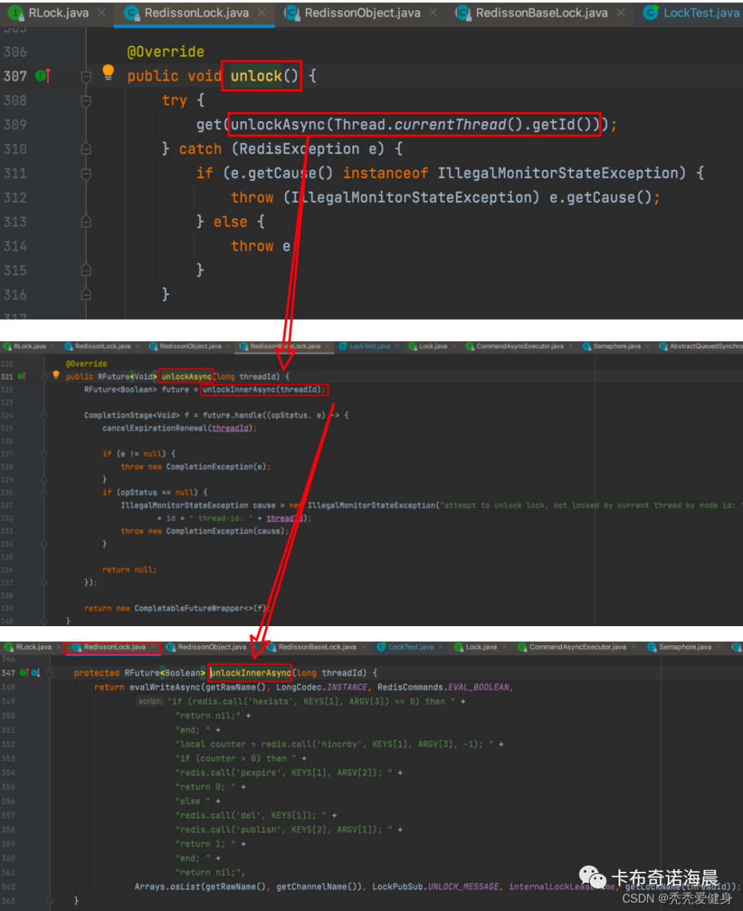 和加锁的方式⼀样,释放锁也是通过lua脚本来完成的;