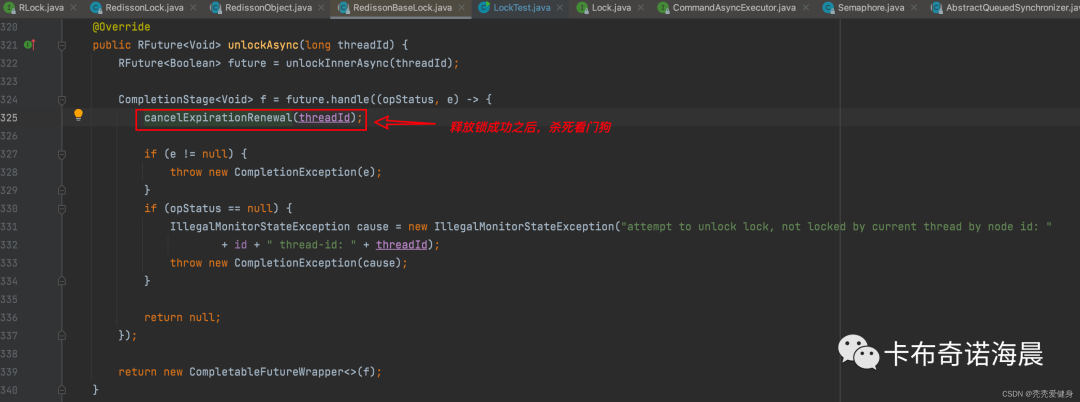 通过LUA脚本释放锁成功之后,会将看门狗杀死;