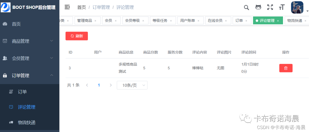 @Slf4j@Service@AllArgsConstructor//@CacheConfig(cacheNames = "CeamStoreOrder")@Transactional(propagation = Propagation.SUPPORTS, readOnly = true, rollbackFor = Exception.class)public class CeamStoreOrderServiceImpl extends BaseServiceImpl<StoreOrderMapper, CeamStoreOrder> implements CeamStoreOrderService {private final IGenerator generator;private CeamUserService userService;private UserMapper userMapper;private CeamStorePinkService storePinkService;private CeamStoreOrderCartInfoService storeOrderCartInfoService;private final CeamUserBillService CeamUserBillService;private final CeamStoreOrderStatusService CeamStoreOrderStatusService;private final CeamPayService payService;private final CeamMiniPayService miniPayService;private final CeamSystemStoreService systemStoreService;private final CeamStoreCartService storeCartService;private final StoreOrderMapper CeamStoreOrderMapper;private final StoreProductMapper CeamStoreProductMapper;@Overridepublic OrderCountDto getOrderCount() {//获取所有订单转态为已支付的List<CountDto> nameList = storeCartService.findCateName();Map<String, Integer> childrenMap = new HashMap<>();nameList.forEach(i -> {if (i != null) {if (childrenMap.containsKey(i.getCatename())) {childrenMap.put(i.getCatename(), childrenMap.get(i.getCatename()) + 1);} else {childrenMap.put(i.getCatename(), 1);}}});List<OrderCountDto.OrderCountData> list = new ArrayList<>();List<String> columns = new ArrayList<>();childrenMap.forEach((k, v) -> {OrderCountDto.OrderCountData orderCountData = new OrderCountDto.OrderCountData();orderCountData.setName(k);orderCountData.setValue(v);columns.add(k);list.add(orderCountData);});OrderCountDto orderCountDto = new OrderCountDto();orderCountDto.setColumn(columns);orderCountDto.setOrderCountDatas(list);return orderCountDto;}@Override// 此处方法已经废弃public OrderTimeDataDto getOrderTimeData() {int today = OrderUtil.dateToTimestampT(DateUtil.beginOfDay(new Date()));int yesterday = OrderUtil.dateToTimestampT(DateUtil.beginOfDay(DateUtil.yesterday()));int lastWeek = OrderUtil.dateToTimestampT(DateUtil.beginOfDay(DateUtil.lastWeek()));int nowMonth = OrderUtil.dateToTimestampT(DateUtil.beginOfMonth(new Date()));OrderTimeDataDto orderTimeDataDTO = new OrderTimeDataDto();orderTimeDataDTO.setTodayCount(CeamStoreOrderMapper.countByPayTimeGreaterThanEqual(today));orderTimeDataDTO.setProCount(CeamStoreOrderMapper.countByPayTimeLessThanAndPayTimeGreaterThanEqual(today, yesterday));orderTimeDataDTO.setLastWeekCount(CeamStoreOrderMapper.countByPayTimeGreaterThanEqual(lastWeek));orderTimeDataDTO.setMonthCount(CeamStoreOrderMapper.countByPayTimeGreaterThanEqual(nowMonth));orderTimeDataDTO.setUserCount(userMapper.selectCount(new LambdaQueryWrapper<CeamUser>()));orderTimeDataDTO.setOrderCount(CeamStoreOrderMapper.selectCount(new LambdaQueryWrapper<CeamStoreOrder>()));orderTimeDataDTO.setPriceCount(CeamStoreOrderMapper.sumTotalPrice());orderTimeDataDTO.setGoodsCount(CeamStoreProductMapper.selectCount(new LambdaQueryWrapper<CeamStoreProduct>()));return orderTimeDataDTO;}@Overridepublic Map<String, Object> chartCount() {Map<String, Object> map = new LinkedHashMap<>();int nowMonth = OrderUtil.dateToTimestampT(DateUtil.beginOfMonth(new Date()));map.put("chart", CeamStoreOrderMapper.chartList(nowMonth));map.put("chartT", CeamStoreOrderMapper.chartListT(nowMonth));return map;}@Override//@Cacheablepublic Map<String, Object> queryAll(CeamStoreOrderQueryCriteria criteria, Pageable pageable) {getPage(pageable);PageInfo<CeamStoreOrder> page = new PageInfo<>(queryAll(criteria));List<CeamStoreOrderDto> storeOrderDTOS = new ArrayList<>();for (CeamStoreOrder CeamStoreOrder : page.getList()) {orderList(storeOrderDTOS, CeamStoreOrder);}Map<String, Object> map = new LinkedHashMap<>(2);map.put("content", storeOrderDTOS);map.put("totalElements", page.getTotal());return map;}/*** 代码提取* @param storeOrderDTOS* @param CeamStoreOrder*/private void orderList(List<CeamStoreOrderDto> storeOrderDTOS, CeamStoreOrder CeamStoreOrder) {CeamStoreOrderDto CeamStoreOrderDto = generator.convert(CeamStoreOrder, CeamStoreOrderDto.class);Integer _status = OrderUtil.orderStatus(CeamStoreOrder.getPaid(), CeamStoreOrder.getStatus(),CeamStoreOrder.getRefundStatus());if (CeamStoreOrder.getStoreId() > 0) {CeamSystemStore systemStore = systemStoreService.getById(CeamStoreOrder.getStoreId());if (Objects.nonNull(systemStore)) {String storeName = systemStore.getName();CeamStoreOrderDto.setStoreName(storeName);}}//订单状态String orderStatusStr = OrderUtil.orderStatusStr(CeamStoreOrder.getPaid(), CeamStoreOrder.getStatus(), CeamStoreOrder.getShippingType(), CeamStoreOrder.getRefundStatus());if (_status == 3) {String refundTime = OrderUtil.stampToDate(String.valueOf(CeamStoreOrder.getRefundReasonTime()));String str = "<b style='color:#f124c7'>申请退款</b><br/>" +"<span>退款原因:" + CeamStoreOrder.getRefundReasonWap() + "</span><br/>" +"<span>备注说明:" + CeamStoreOrder.getRefundReasonWapExplain() + "</span><br/>" +"<span>退款时间:" + refundTime + "</span><br/>";orderStatusStr = str;}CeamStoreOrderDto.setStatusName(orderStatusStr);CeamStoreOrderDto.set_status(_status);String payTypeName = OrderUtil.payTypeName(CeamStoreOrder.getPayType(), CeamStoreOrder.getPaid());CeamStoreOrderDto.setPayTypeName(payTypeName);CeamStoreOrderDto.setPinkName(orderType(CeamStoreOrder.getId(), CeamStoreOrder.getPinkId(), CeamStoreOrder.getCombinationId(), CeamStoreOrder.getSeckillId(), CeamStoreOrder.getBargainId(),CeamStoreOrder.getShippingType()));List<CeamStoreOrderCartInfo> cartInfos = storeOrderCartInfoService.list(new LambdaQueryWrapper<CeamStoreOrderCartInfo>().eq(CeamStoreOrderCartInfo::getOid, CeamStoreOrder.getId()));List<StoreOrderCartInfoDto> cartInfoDTOS = new ArrayList<>();for (CeamStoreOrderCartInfo cartInfo : cartInfos) {StoreOrderCartInfoDto cartInfoDTO = new StoreOrderCartInfoDto();cartInfoDTO.setCartInfoMap(JSON.parseObject(cartInfo.getCartInfo()));cartInfoDTOS.add(cartInfoDTO);