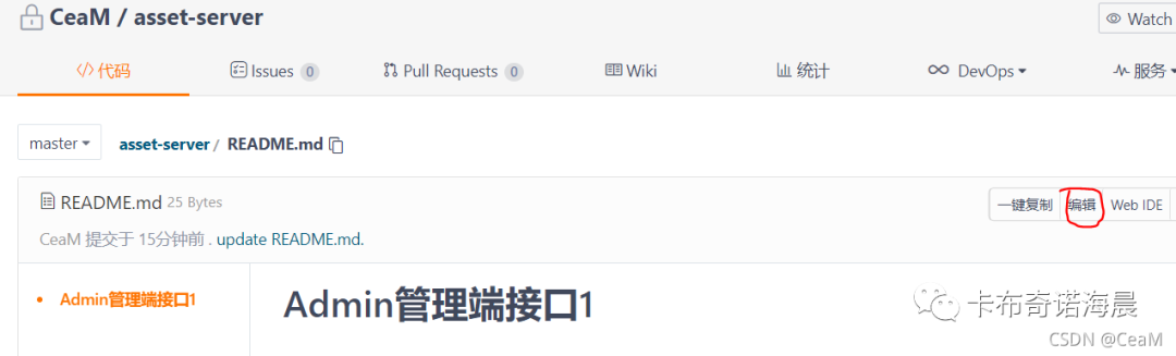 1)把远程仓库的README.md内容编辑为Admin管理端接口1(之前是Admin管理端接口)。