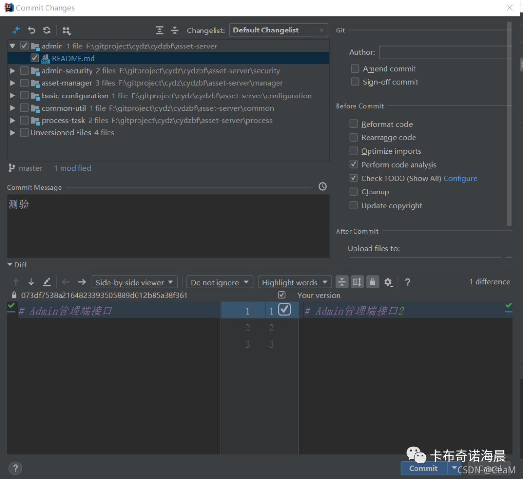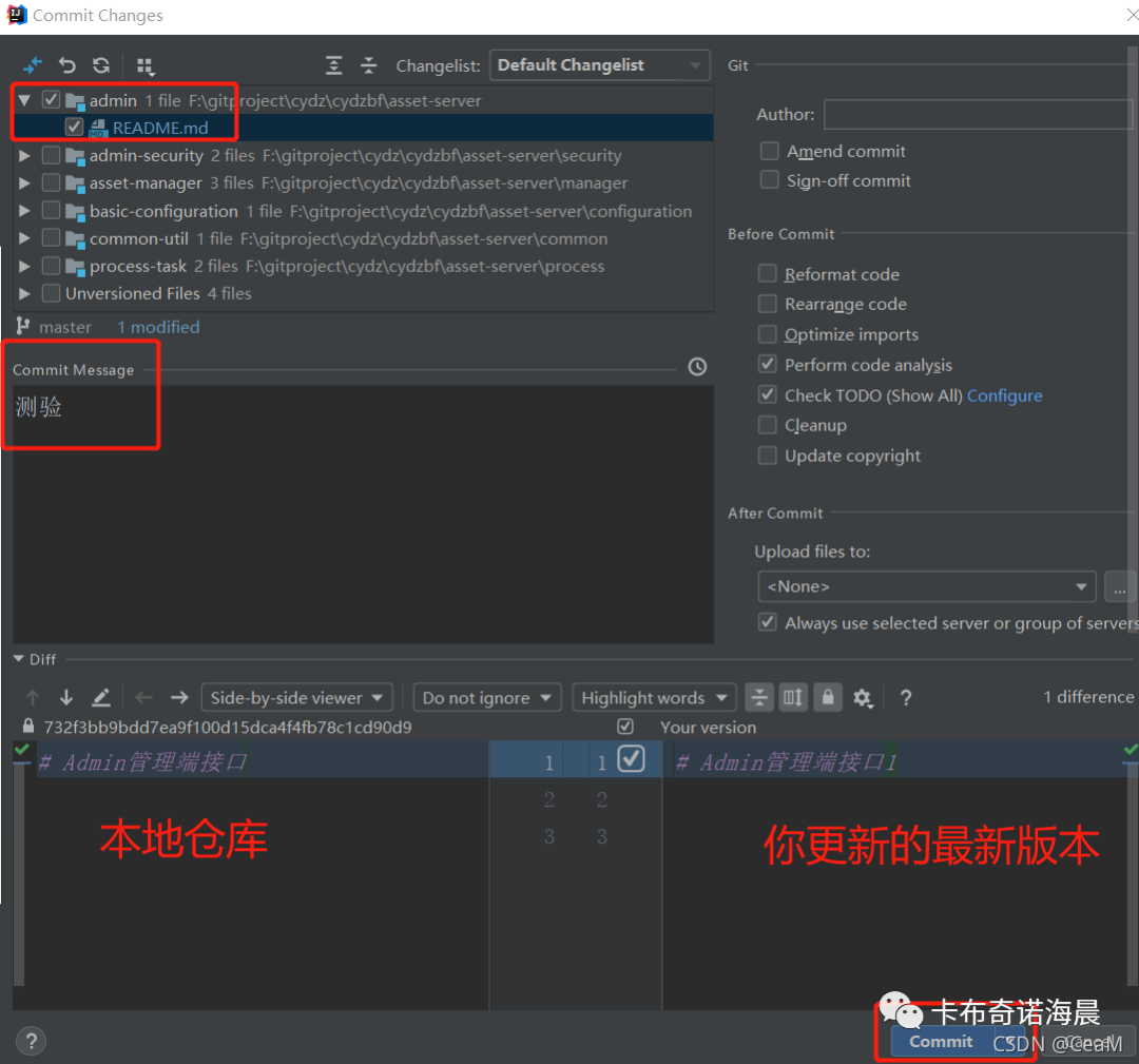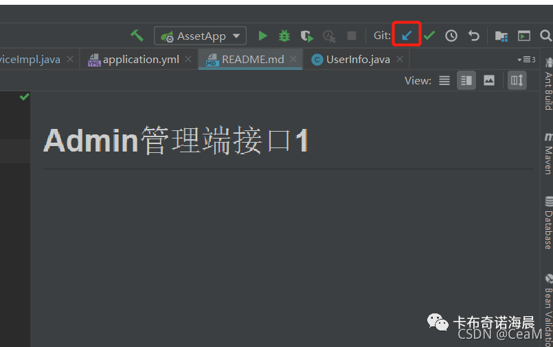 现在远程仓库的README为Admin管理端接口,本地我改成Admin管理端接口1,这次先不commit,我们先来pull