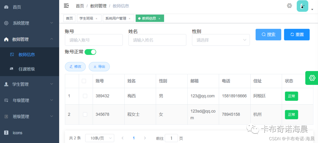 2.1、教师管理