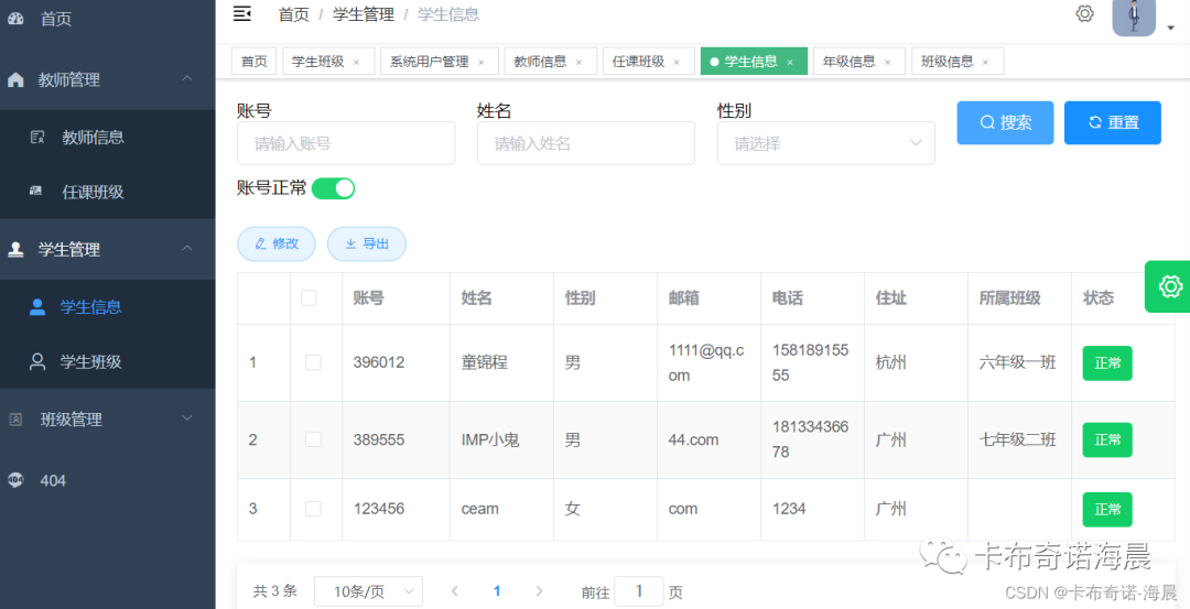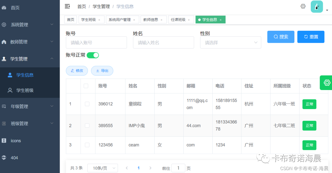 3.1、学生信息