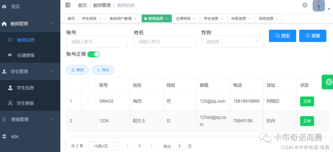 2.2、教师管理