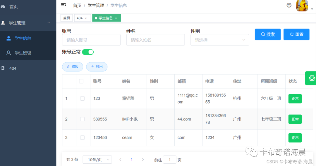 2.3、学生管理