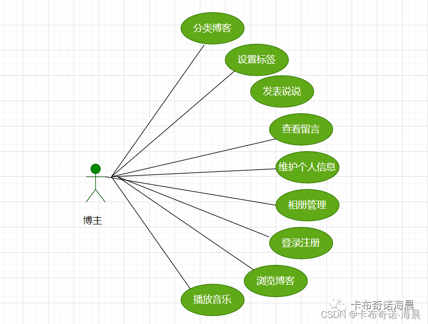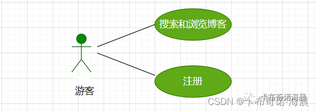 分析现有情况及问题,将个人博客系统划分为三个功能用例:游客用例、用户用例、管理员用例。