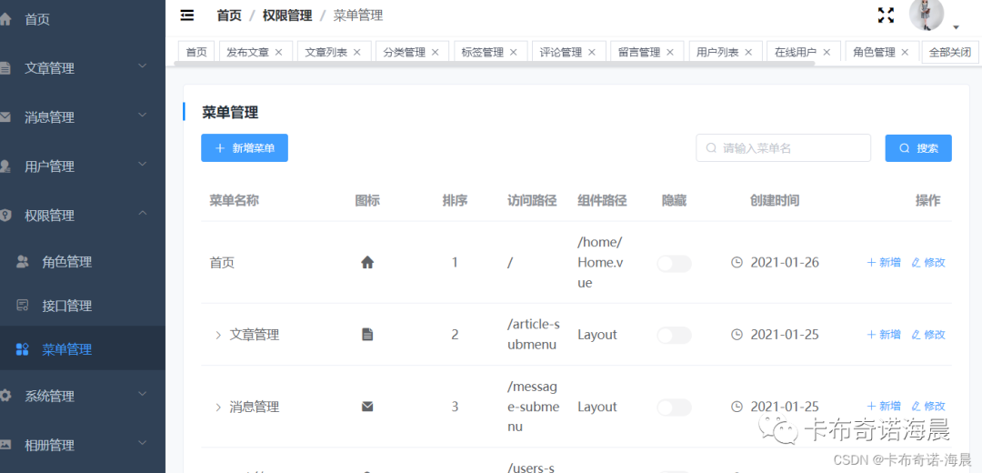 3)菜单管理