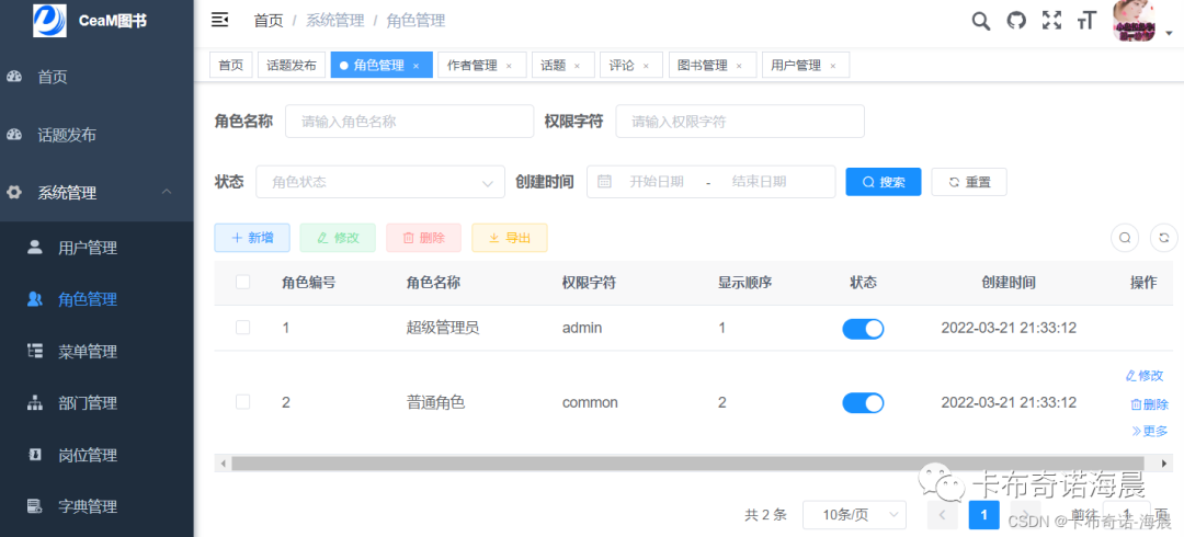 /*** <p>* 角色表 服务实现类* </p>** @author CeaM* @since 2023-01-28*/@Slf4j@Service@AllArgsConstructorpublic class CeamSysRoleServiceImpl extends ServiceImpl<CeamSysRoleMapper, CeamSysRole> implements ICeamSysRoleService {private ICeamSysMenuService ceamSysMenuService;private ICeamRoleMenuService ceamRoleMenuService;@Overridepublic IPage<CeaMSysRoleVO> pageCeaMSysRoleVO(PageableDTO pageable) {LambdaQueryWrapper<CeamSysRole> queryWrapper = Wrappers.<CeamSysRole>lambdaQuery().eq(CeamSysRole::getDeleted, GlobalConstants.FALSE);Page<CeamSysRole> page = new Page<>(pageable.getPage(), pageable.getSize());// 手动设置当前页,不然分页失效page.setCurrent((long)pageable.getPage() + GlobalConstants.ONE);Page<CeamSysRole> ceamSysRolePage = page(page, queryWrapper);IPage<CeaMSysRoleVO> ceaMSysRoleVOIPage = PageVOUtil.copyToPageVO(ceamSysRolePage, CeaMSysRoleVO.class);for (CeaMSysRoleVO role : ceaMSysRoleVOIPage.getRecords()) {List<MenuDTO> menuDTOS = ceamSysMenuService.findByRoleId(role.getId(), GlobalConstants.ZERO);role.setMenus(menuDTOS);}return ceaMSysRoleVOIPage;}@Overridepublic Collection<SimpleGrantedAuthority> grantedAuthorities(Long userId) {List<RoleDTO> roleItemDTOS = this.baseMapper.listByUserId(userId);if (CollectionUtils.isEmpty(roleItemDTOS)) {throw new ServiceException("没有分配角色");}List<MenuDTO> menuDTOS = ceamSysMenuService.findByRoles(roleItemDTOS, GlobalConstants.ZERO);// 角色Set<String> permissions = roleItemDTOS.stream().filter(role -> StringUtils.isNotBlank(role.getName())).map(RoleDTO::getName).collect(Collectors.toSet());permissions.addAll(menuDTOS.stream().filter(menu -> StringUtils.isNotBlank(menu.getPermission())).map(MenuDTO::getPermission).collect(Collectors.toSet()));return permissions.stream().map(SimpleGrantedAuthority::new).collect(Collectors.toList());}@Overridepublic List<RoleDTO> listByUserId(Long userId) {return this.baseMapper.listByUserId(userId);}@Overridepublic void updateMenu(CeaMSysRoleDTO roleDTO, CeamSysRole role) {if (roleDTO.getMenus().size() > 0) {List<CeamRoleMenu> rolesMenusList = roleDTO.getMenus().stream().map(i -> {CeamRoleMenu rolesMenus = new CeamRoleMenu();rolesMenus.setRoleId(roleDTO.getId());rolesMenus.setMenuId(i.getId());return rolesMenus;}).collect(Collectors.toList());ceamRoleMenuService.remove(new LambdaQueryWrapper<CeamRoleMenu>().eq(CeamRoleMenu::getRoleId, roleDTO.getId()));ceamRoleMenuService.saveBatch(rolesMenusList);}}}