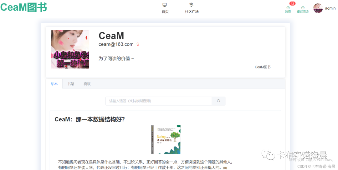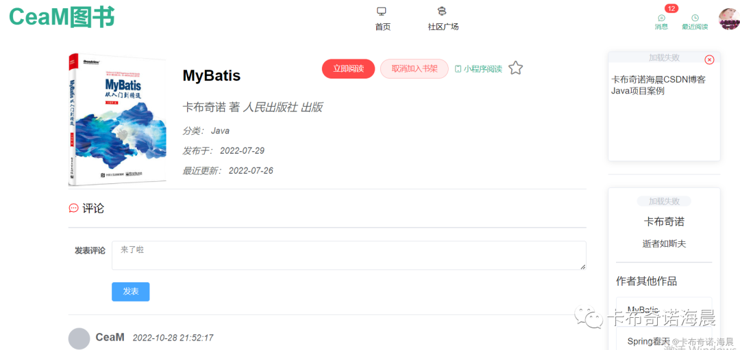 本系统是基于Spring1Boot+MyBatis+Vue+Uniapp的前后端完全分离的图书阅读管理系统。值得一提的是前端使用了目前市场上较流行的组件elementui,在本系统里面对其进行了二次封装,使得页面更加的简洁与优雅,也提高了系统的可维护性。同时探究前端与后端是如何建立数据交互的,以及它为系统提供的服务和已经建好的多张表之间的关系。故课题研究的是这些技术的关联以及如何实现本系统,同时探究系统如何在Linux系统进行Docker容器化部署。