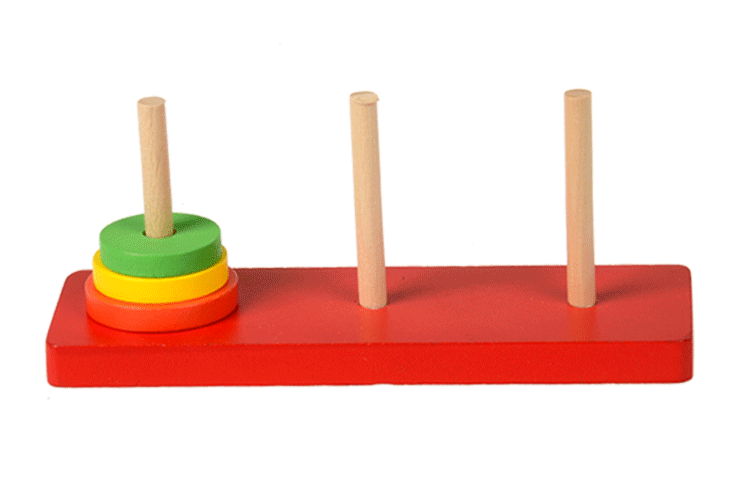 汉诺塔问题:汉诺塔问题源自印度一个古老的神话,印度教的“创造之神”梵蒂冈创造世界时做了3根金刚石柱,其中的一根柱子按照从小到大的顺序放着64个黄金圆盘。梵天命令一个叫婆罗门的门徒将所有的圆盘移动到另一个柱子上,移动过程中必须遵守以下规则: