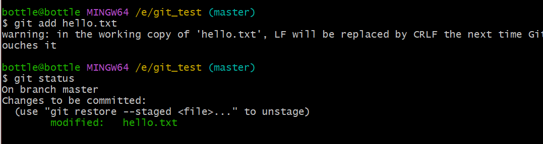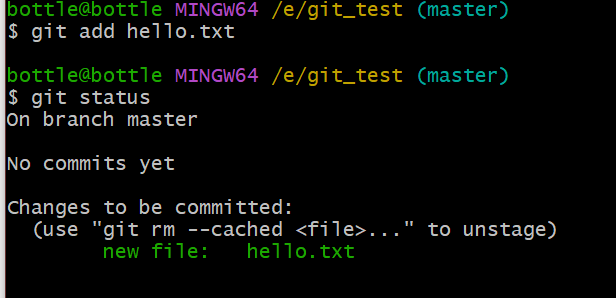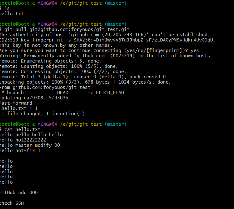 git add hello.txtgit commit -m "modifty by YHS" hello.txtgit push git_test master //传到GitHub
