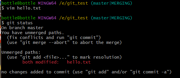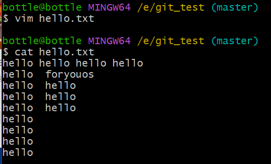 vim hello.txt //进入hello.txt 手动合并// 将不需要的内容进行删除