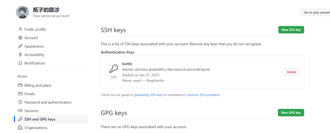 公钥复制到GitHub进行添加
