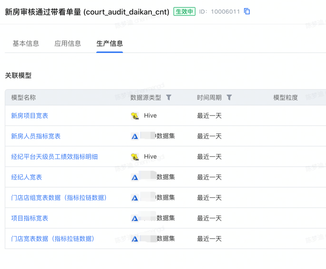 DataLeap的业务管理模块由数据分析师或产品进行维护,主要是管理指标的业务分类和定义业务口径。业务定义将在DataWind看板或产品页面展示露出。其中生产信息可以查看当前指标的模型应用,方面后续指标使用分析。