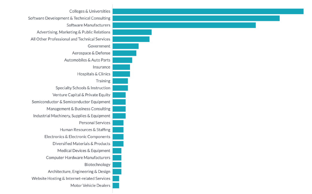 光锥智能根据公开披露信息,将国内外的SaaS智能应用按场景做了分类。据不完全统计,国外现在跑出来了22个成熟的SaaS智能应用,国内市场率先公布或透露了14个应用。上面表格的应用覆盖了设计、文生图、电商销售、支付、协同办公、关系管理、教育、社交、新闻等场景。这些可能还只是冰山一角,更多可挖掘的智能化应用还在路上。美国研究机构最新数据显示,全美有1116家公司正在使用OpenAI的技术、产品,公司所处的行业前五名包含了软件制造商、广告、营销和公关等。从表中覆盖的领域不难发现,无论国内、国外智能化都首先发生在了图文生成和设计领域,智能化将极其专业的门槛降了下来,这使得过去只有具备专业能力才能使用的绘画、设计软件一下子涌进了许多普通用户。