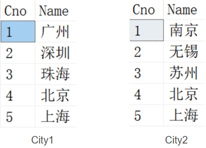 还是以上面的City1和City2为例,取两个表的并集,我们可以这样写SQL: