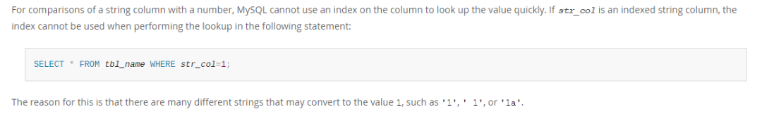 MySQL 为什么不把 31 隐式转换字符串呢?这个问题在 MySQL 官方文档中给出了答案。