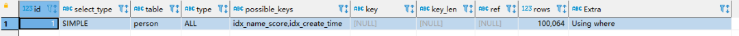 explain select * from person where NAME>'name84059' and create_time>'2023-04-15 13:00:00'
