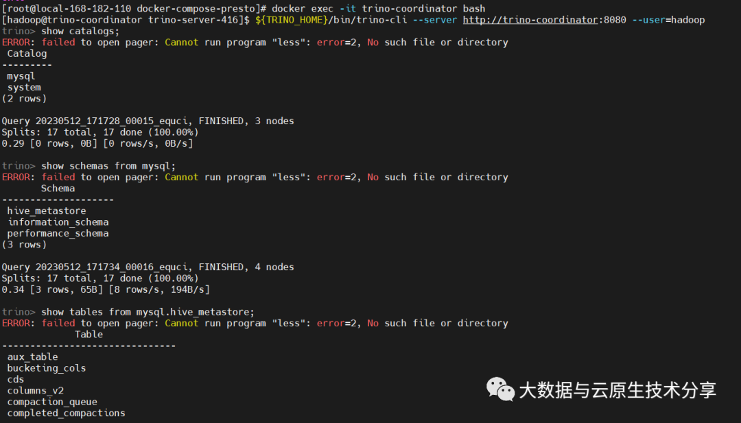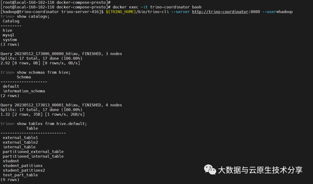 docker-compose 快速部署 Presto(Trino)保姆级教程就先到这里了,有任何疑问可关注我的公众号【大数据与云原生技术分享】加群交流或私信咨询问题,如这篇文章对你有所帮助,麻烦帮忙一键三连(点赞、转发、加关注)哦~