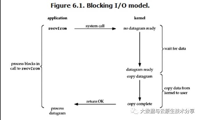 中,默认情况下所有的socket都是阻塞IO,一个典型的读操作流程大概是这样: