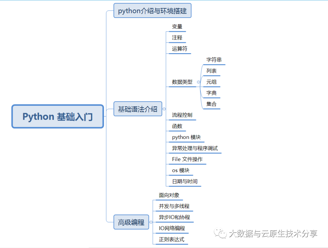 python基础部分就先到这里了,非常简单,网络资料也很多,都差不多,这里也只是针对常用的知识点整理了一下。讲完了基础部分,接下来就进入高级编程了,例如:面向对象、网络编程等等,请小伙伴耐心,也可关注我的公众号【大数据与云原生技术分享】深入交流~