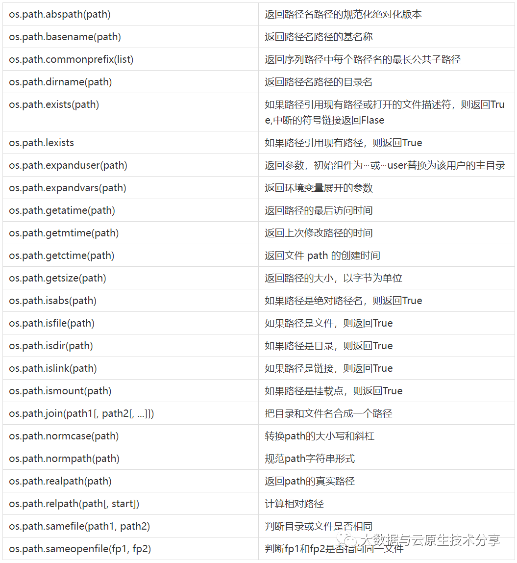 os.path是一个针对路径的模块,模块内提供对文件、目录和路径管理的函数,常见的方法如下表格: