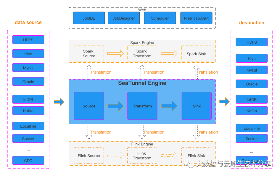 支持分布式快照算法,保证数据一致性。多引擎支持:SeaTunnel 默认使用