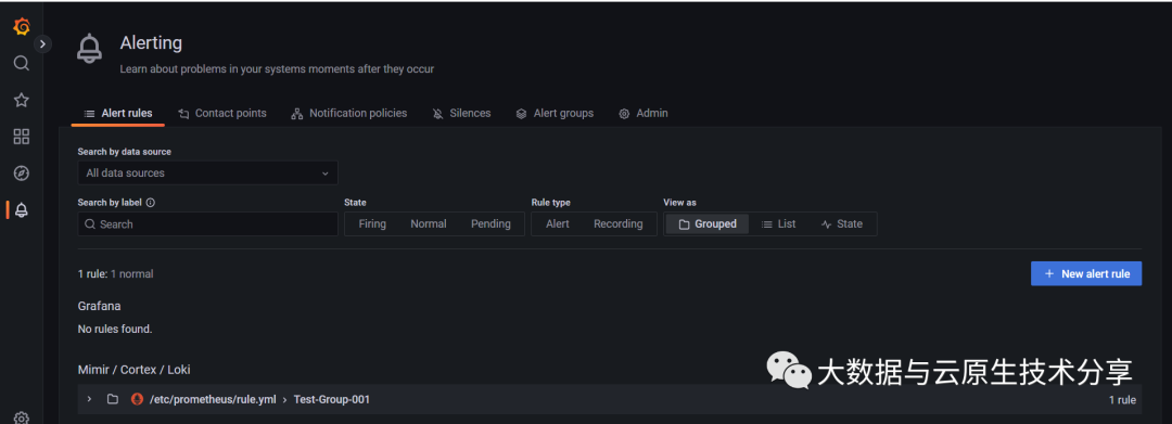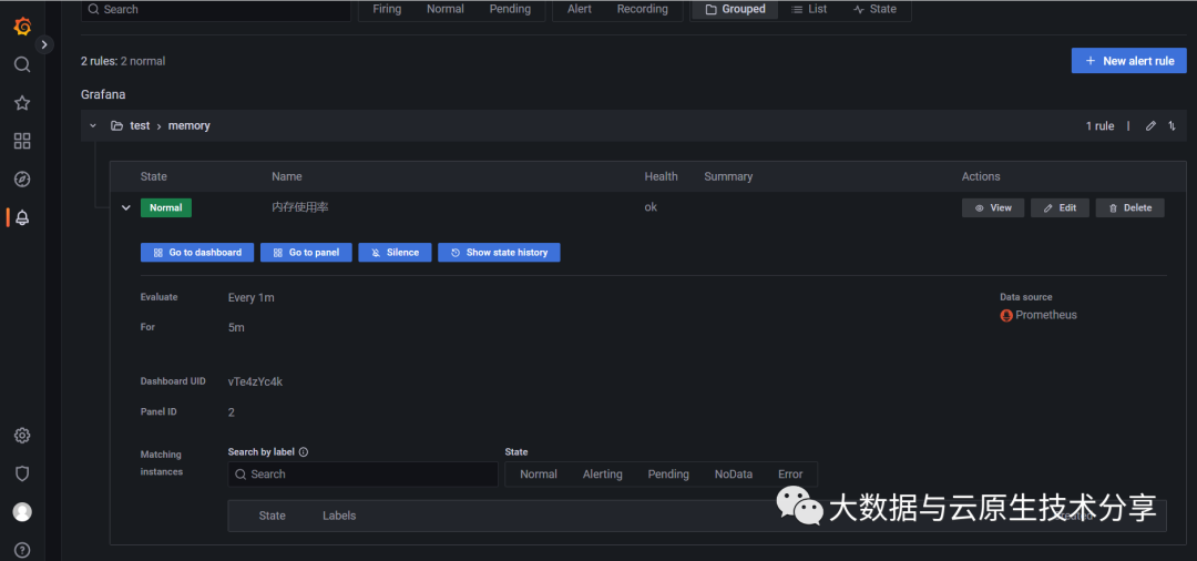 一页包含所有警报:单个 Grafana 警报页面将 Grafana 管理的警报和驻留在与 Prometheus 兼容的数据源中的警报整合到一个位置。