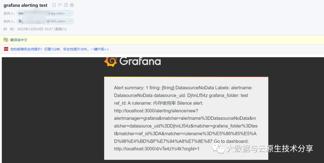 message = MIMEText('grafana alert:' + title + '\n告警时间:' + str(message['startsAt']) +