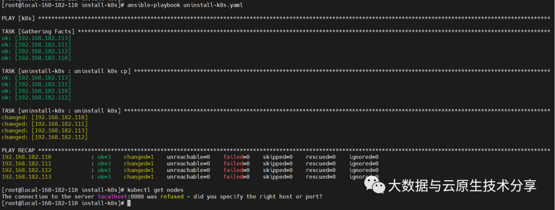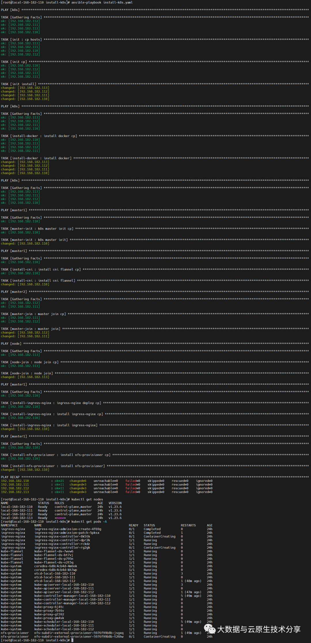 k8s 一键部署(ansible)就先到这里了,后续会继续完善,增加其它组件和验证其它版本,让部署k8s环境变得更简单方便。关注我的公众号【大数据与云原生技术分享】,回复 k8s