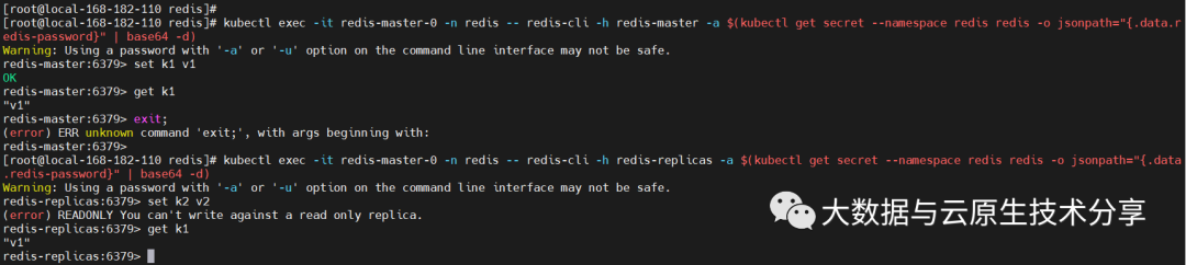 kubectl exec -it redis-sentinel-node-0 -n redis-sentinel -- redis-cli -h redis-sentinel-node-2.redis-sentinel-headless -a $(kubectl get secret --namespace redis-sentinel redis-sentinel -o jsonpath="{.data.redis-password}" | base64 -d)