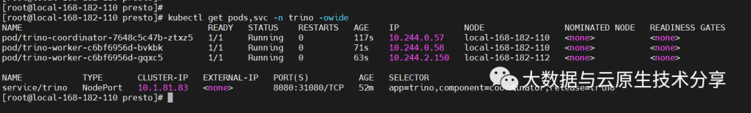 Presto/Trino on k8s 环境部署就先到这里,有不清楚的小伙伴,欢迎给我留言,后续会持续更新【云原生+大数据】教程,请小伙伴耐心等待~